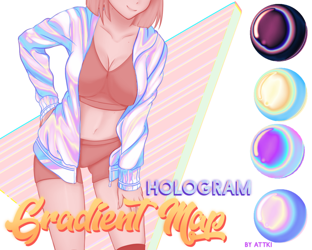 This product has 3 Hologram gradient maps and instructions on how to apply them! there is no way to share gradient maps in porcreate, I provide a gradient map palette and scheme.