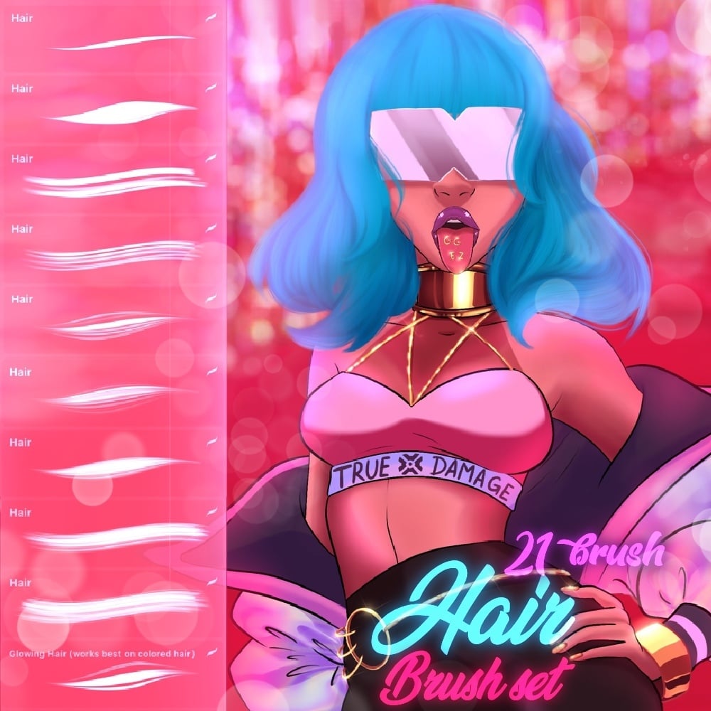 Brushes for drawing anime hair in Procreate. You will get 21 brushes that are perfect for any hairstyle.