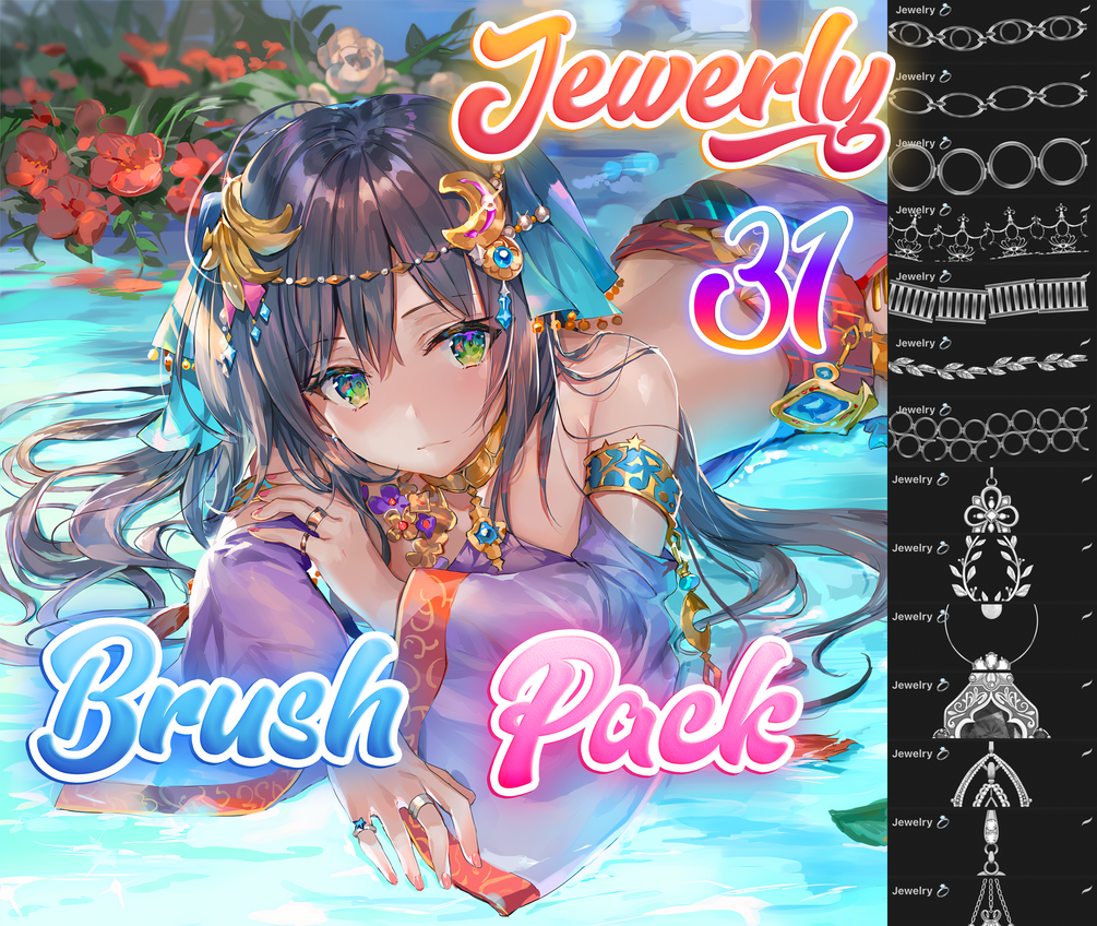 You can download a free version of Anime jewelry brush pack!(7 brushes) - https://attki.gumroad.com/l/FvFcz