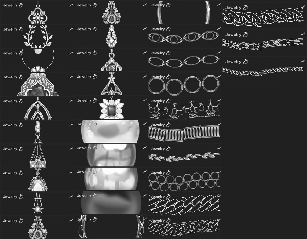 This is the largest set of jewelry to create. This pack contains a lot of jewelry with a variety of stones. There are also pearls! The whole pack consists of 31 brushes: