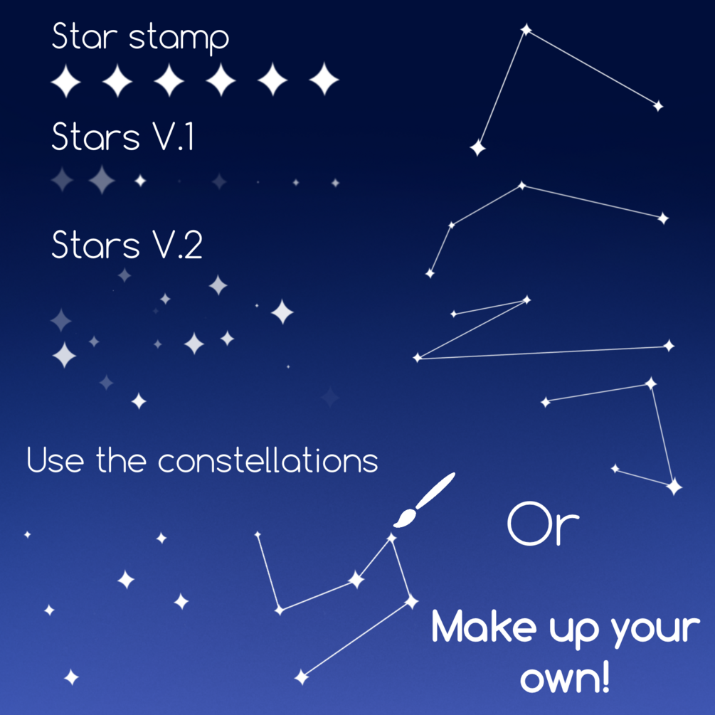 But that's not all – our star and constellation stamps are here to infuse your artwork with a touch of celestial wonder. Elevate your compositions by adding these stamps to create enchanting night skies, enhancing the atmosphere of your artwork, and bringing your visions of beautiful skies to reality.