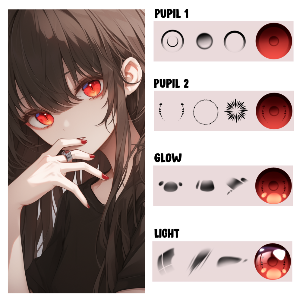 Introducing the Procreate Pupils Brush Pack for anime and manga! This awesome brushset will help you bring to life the coolest and most unique eye pairs 👀