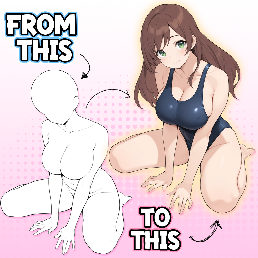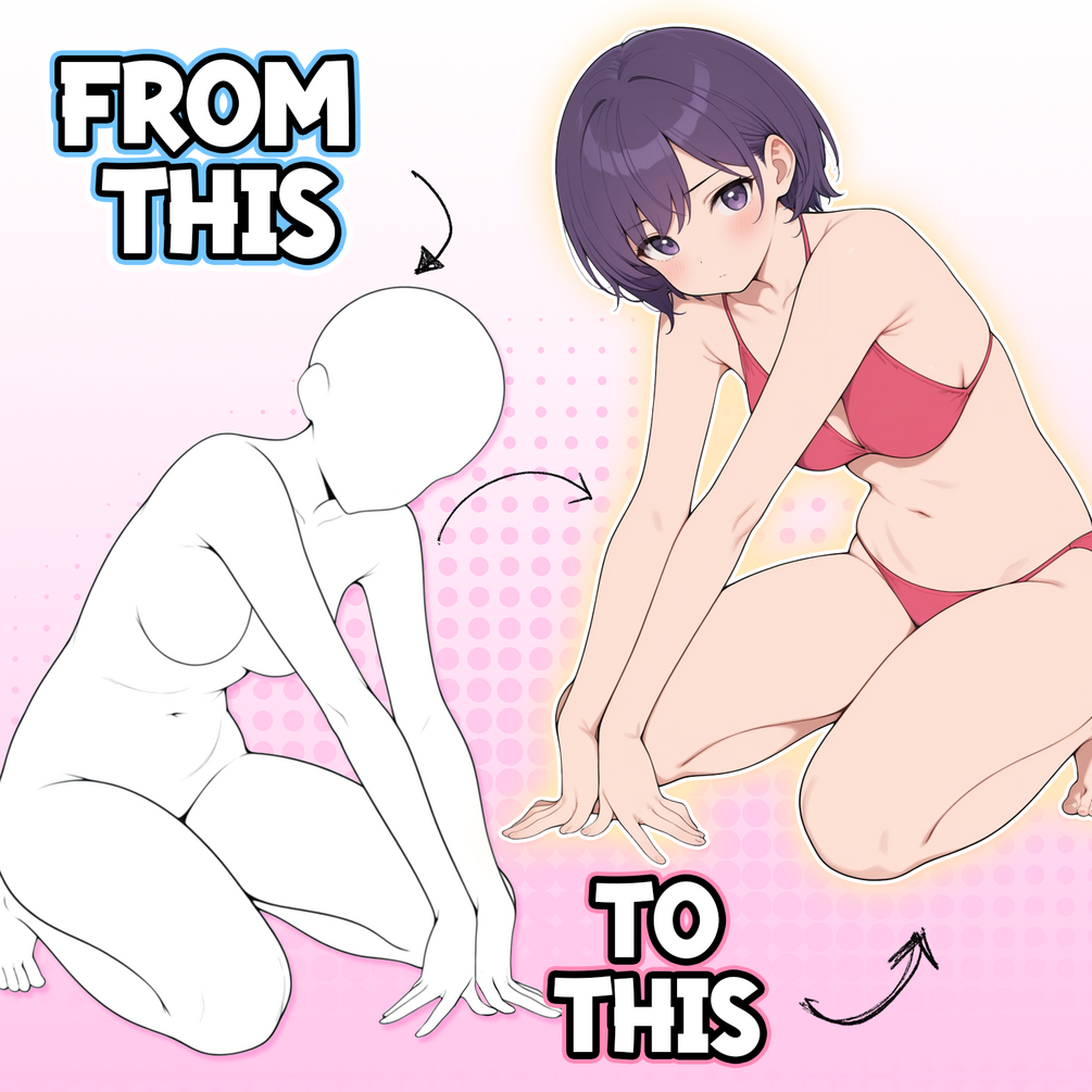 This pose brush pack is designed to help you draw sitting anime girls faster and more confidently in Procreate. With over 6 pose stamps, you get a diverse set of body types, proportions, and perspectives to choose from – perfect for character design, comics, and illustrations.