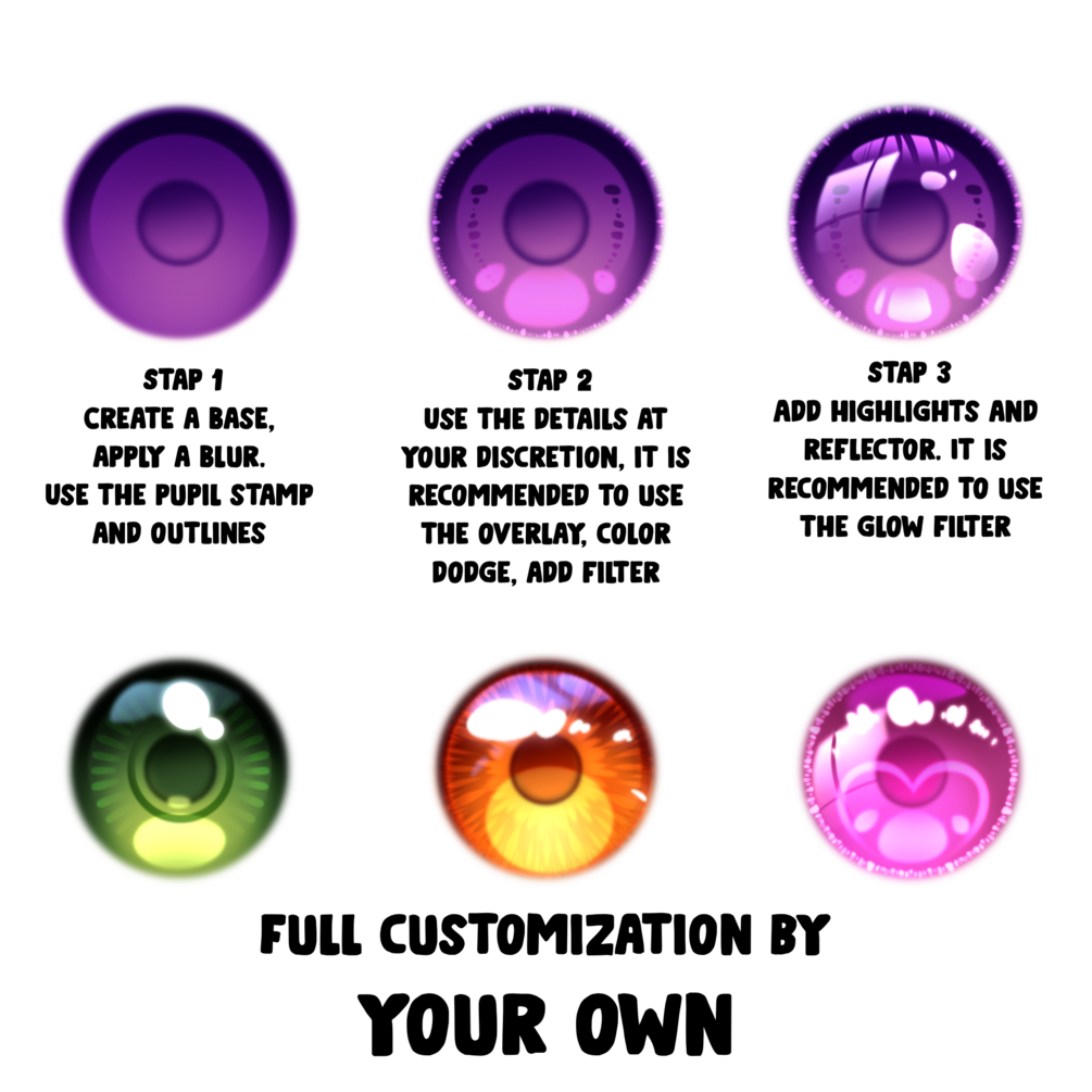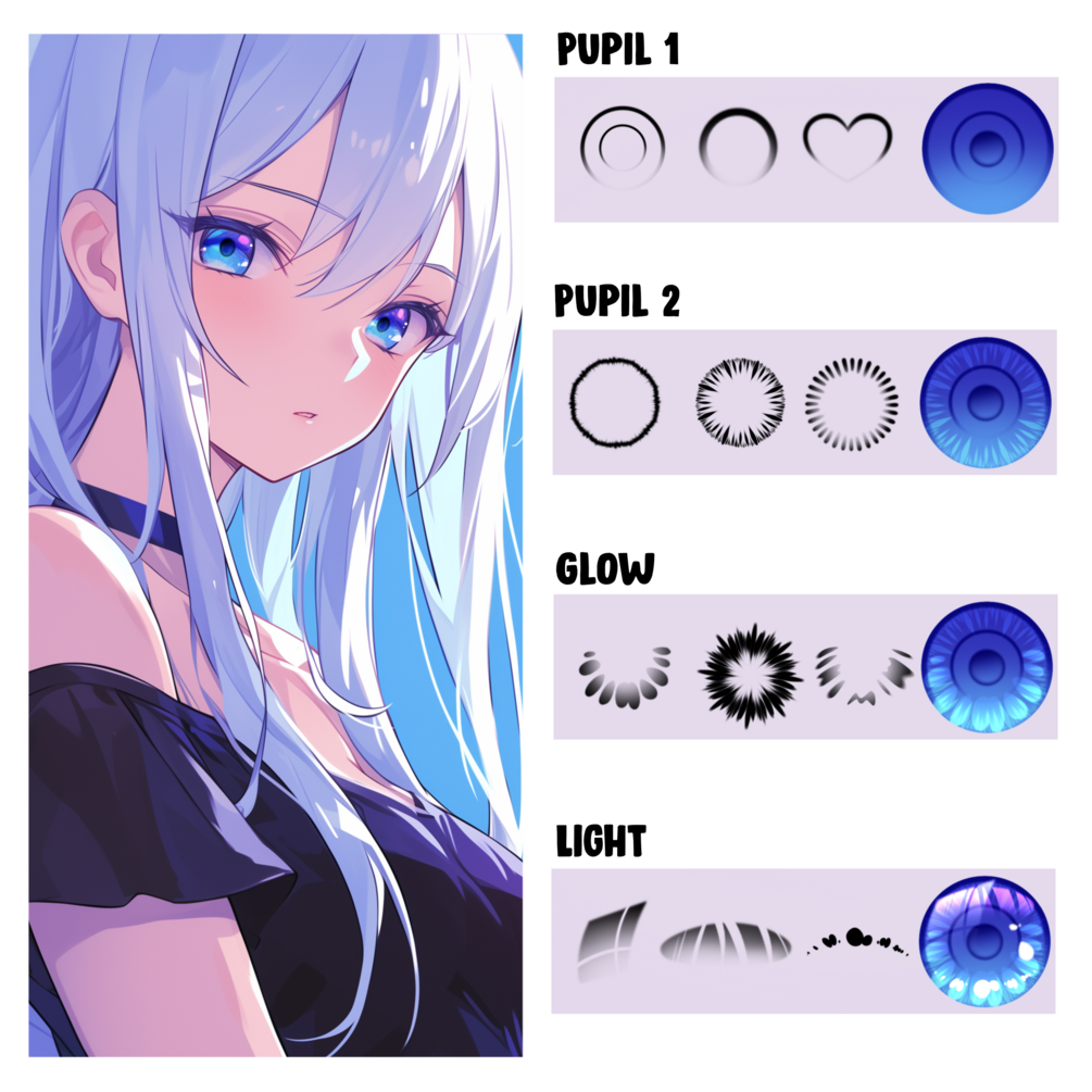 Introducing the Procreate Pupils Brush Pack for anime and manga! This awesome brushset will help you bring to life the coolest and most unique eye pairs ๐